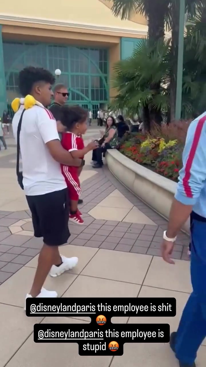 拉菲尼亚对此非常生气,他更新社媒写道:“我恨你 @巴黎迪士尼乐园,你们的这个员工太糟糕了、他很愚蠢,他应该感到羞耻,你们不应该那样对顾客,尤其是孩子。你们应该让孩子开心,而不是冷落孩子。我理解从事这份工作的人的辛劳,但为什么所有白人孩子都得到了拥抱,而我的儿子没有?没什么好说的了,你们真丢人!”
